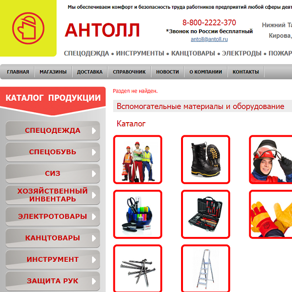 Редизайн интернет-магазина «Антолл» по продаже спецодежды, канцтоваров и прочих товаров для производственных предприятий.